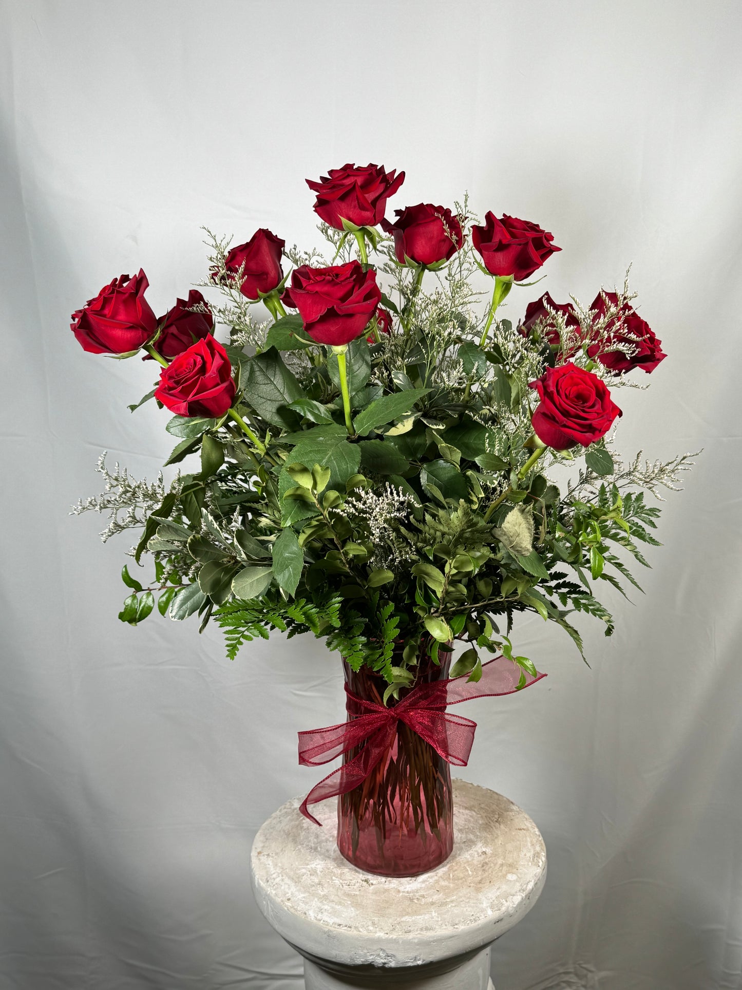 Elevate any occasion with our premium long stem roses, meticulously arranged in a glass vase with lush greenery. The epitome of luxury, choose from our variety of stunning colors. Indulge in a touch of elegance and sophistication with our exquisite roses.