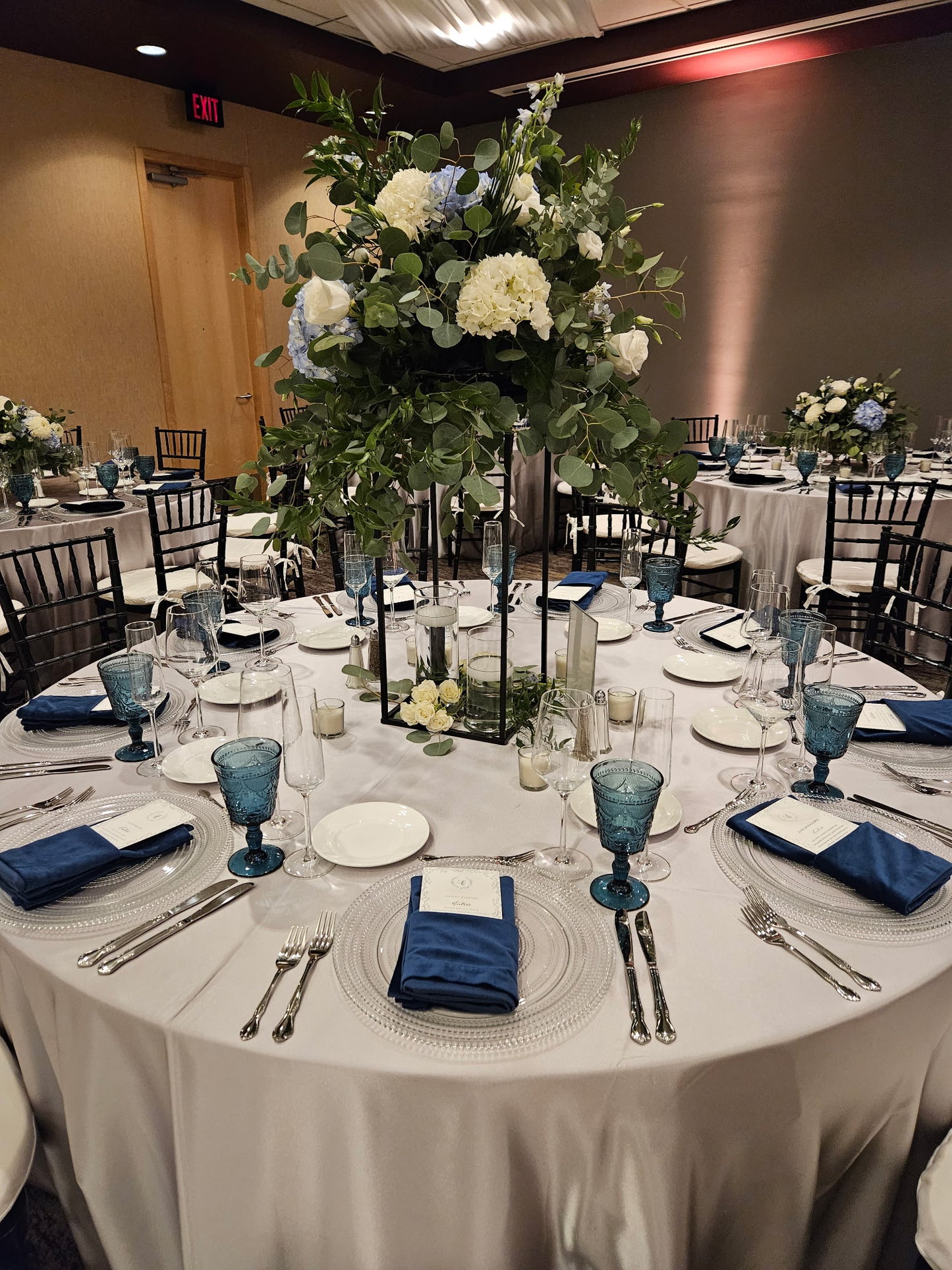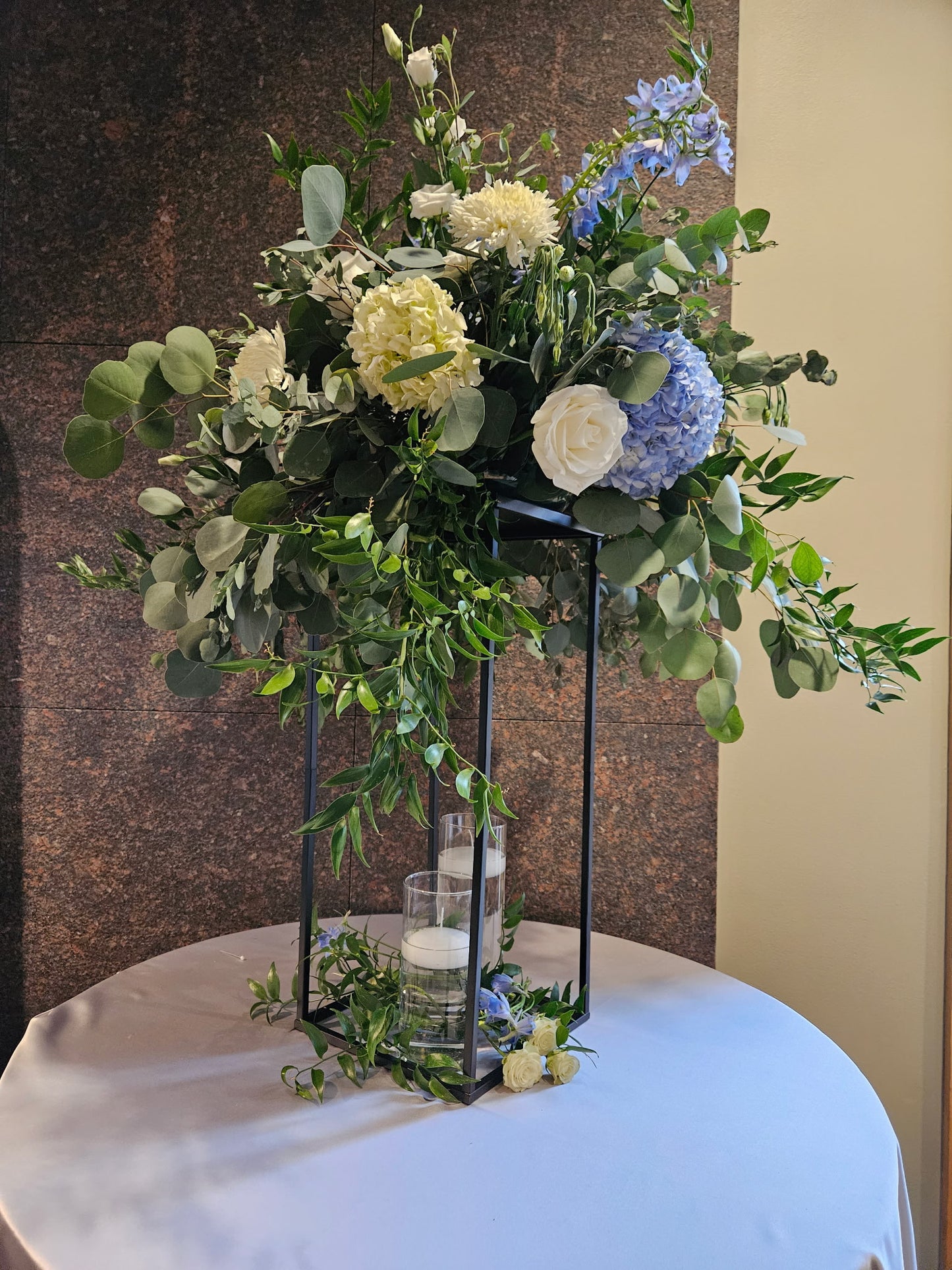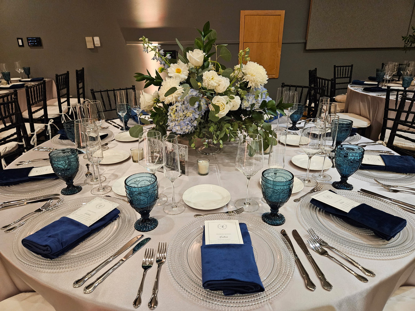 Immerse Yourself in the Beauty of Luxury with Handcrafted Blue and White Flower Arrangements.