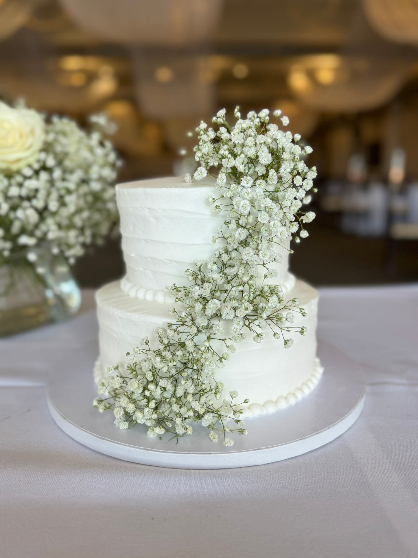 This event was all white flowers and baby's breath.