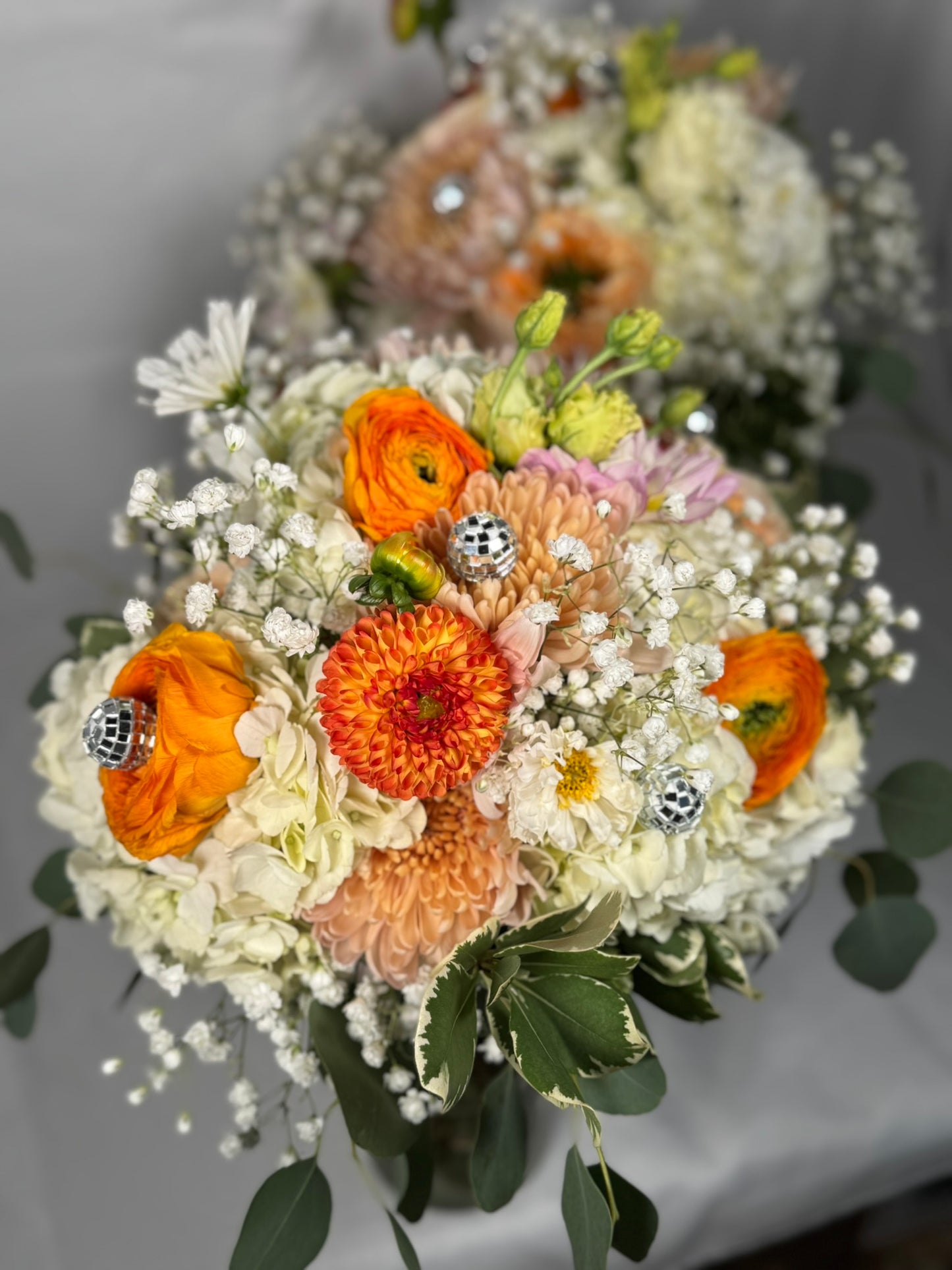 This event featured delicate, ethereal, and whimsical flowers. predominantly white